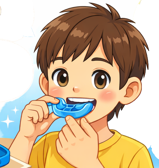 10歳頃までを対象とした、やわらかいシリコン素材のマウスピースです。日中1時間と就寝時のみの装着で、口周りの筋肉を自然にトレーニング。鼻呼吸への促進にもつながります。